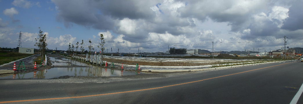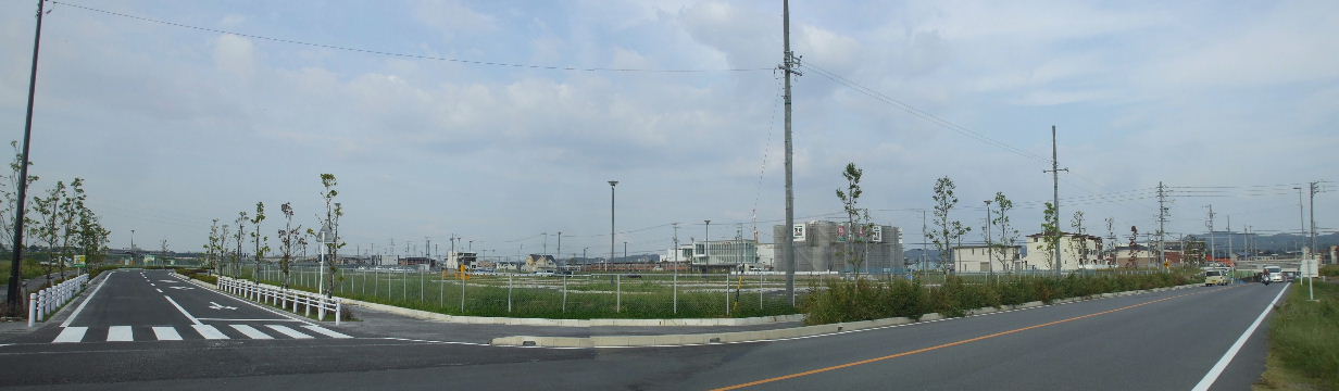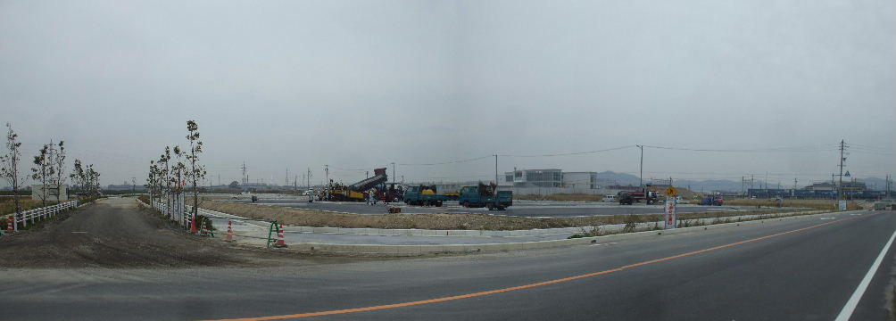 | 2010年3月20日。西口駅前予定地から道路を挟んで西側の水田も埋め立てを始めている。