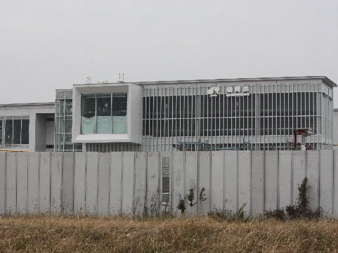| 2010年9月11日。突き当たりにある現場入口をアップしてみる。線路の向こうに事務所の建物がある。