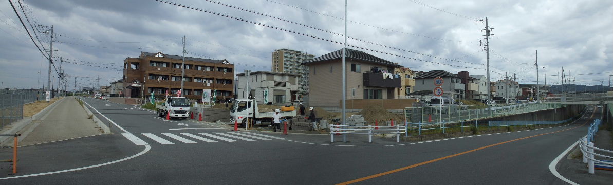 ている。左のマンション予定地は近くで工事事務所らしき建物を作っているので近々工事が始まりそうだ。