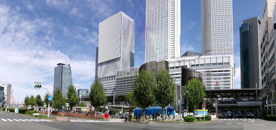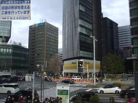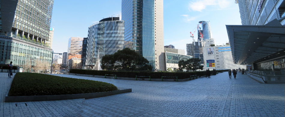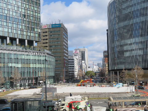 | 2020年02月02日。西、名古屋駅から。手前の車線が無くな ってロータリーのある所まで駅前広場が広がるようだ。 |