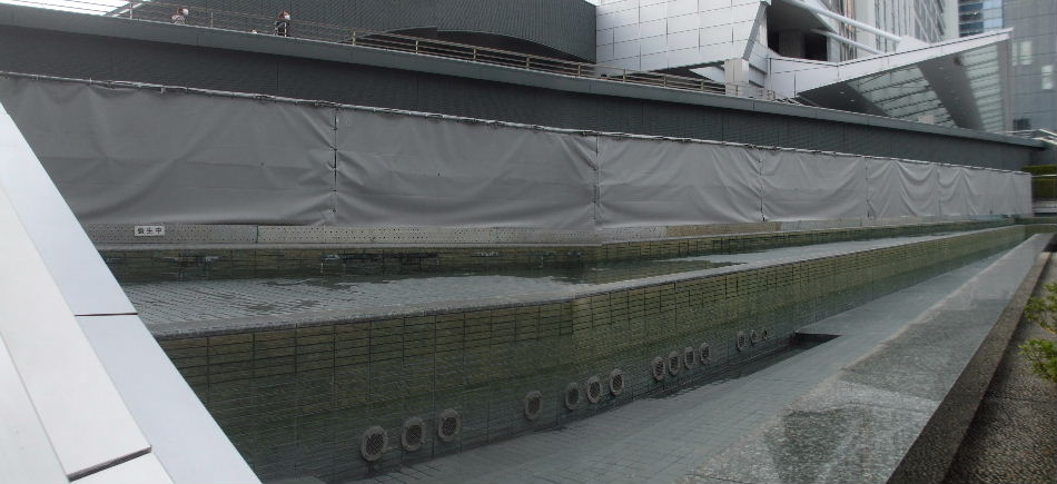 | 2020年02月15日。上画像の水が溜まっているところは水が流れ落ちるようになっていたがすでに大分と前に設備が撤去されていてすっかり干上がっている。 |