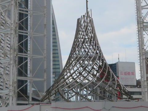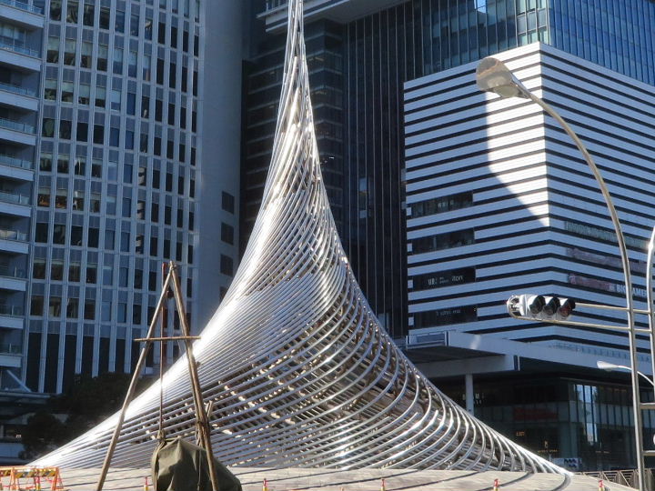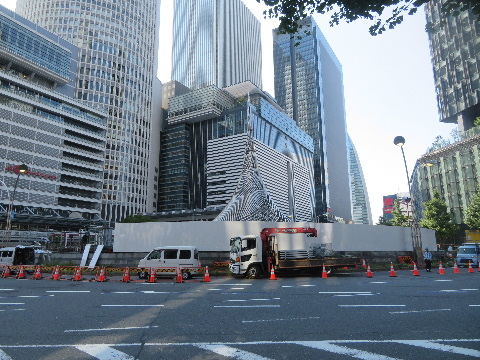 | 2020年02月09日。北東、大名古屋ビル側。 | 2021年03月06日。南東側から巻き上がっているのは無くなって いるが右下から始まっているのは残っている。 |