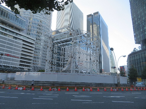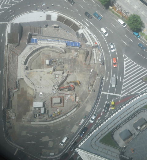 | 2022年09月25日。工事塀と土台だけになる。 | 2022年10月02日。ミッドから見る。土台の丸だけ残る。 |