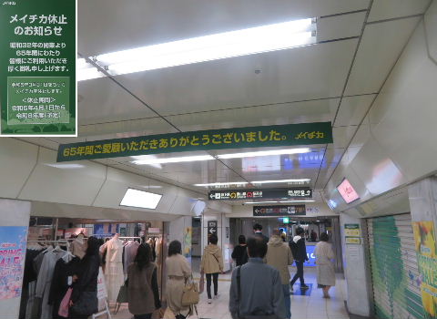 | 2016年07月30日。南、名鉄百貨店側。ここも作り変えられることになっていてこの下の半地下にある名鉄の北改札口は閉鎖される。 |