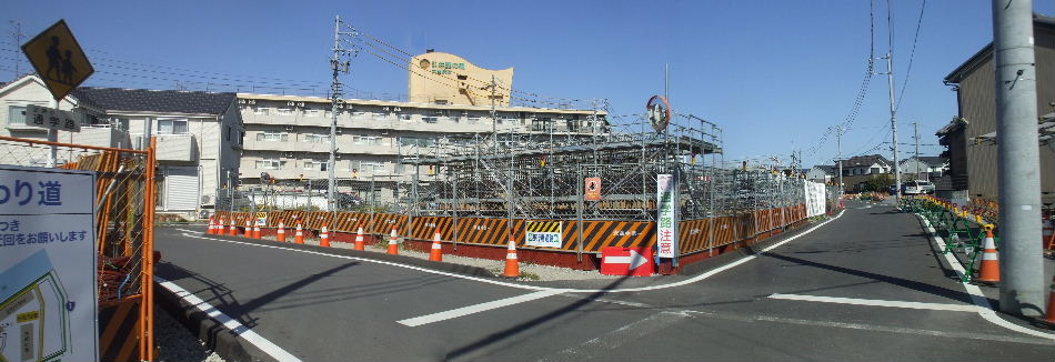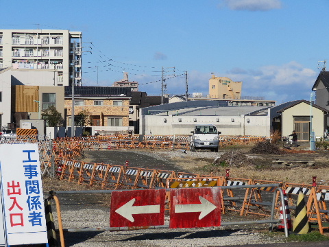2013年12月29日。看板やら何やら並んだ奥で工事中。 |
