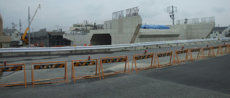 | 2018年10月21日。近鉄が高架になりこれで万場大橋から国道一号線 までつながった。 |
