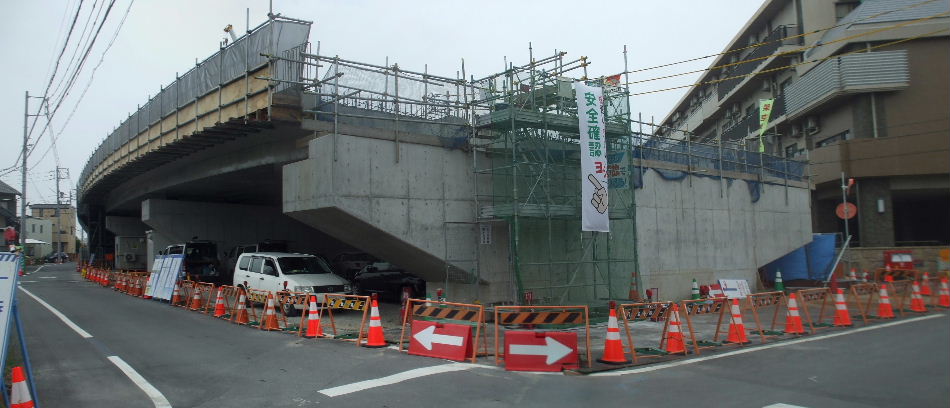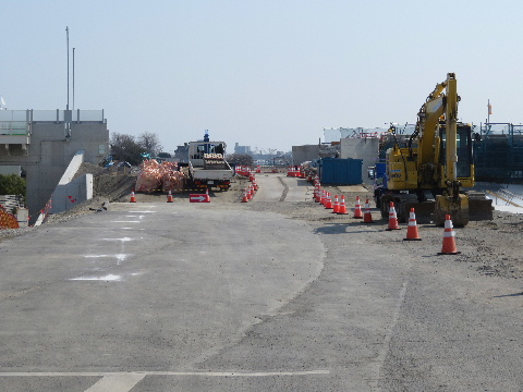 2013年12月29日。こちらは側は橋台や地平に下りていく道路の橋脚工 事が進んでいる。 |