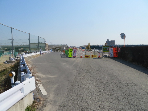 | 2020年03月15日。橋がまだなので堤防道路で丁字路になり今のところ 右折はできない。 |