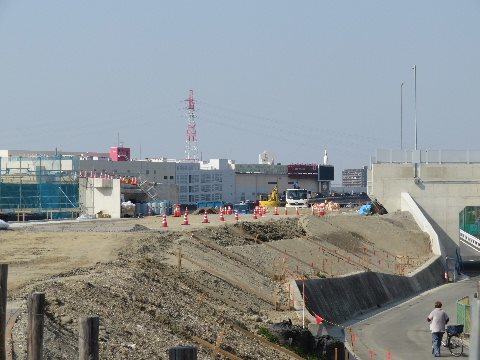 | 2020年03月15日。新川堤防箇所。高架橋の高さまで堤防も嵩上げされるようだ。 |