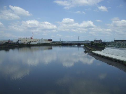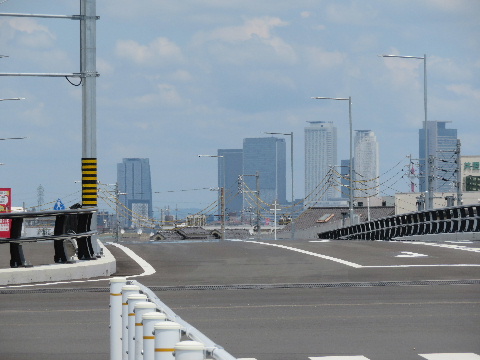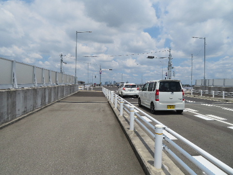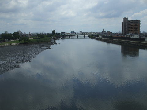 | 2021年07月25日。橋が北東→南西方向に架かっているので ちょうど正面に名古屋駅前のビルが見える。 |
