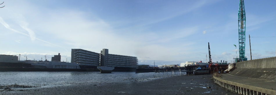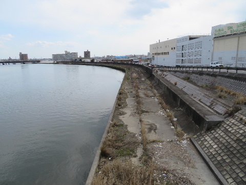 | 2017年01月17日。奥の方に堤防から下りてくるコンクリート橋が見え る。 |