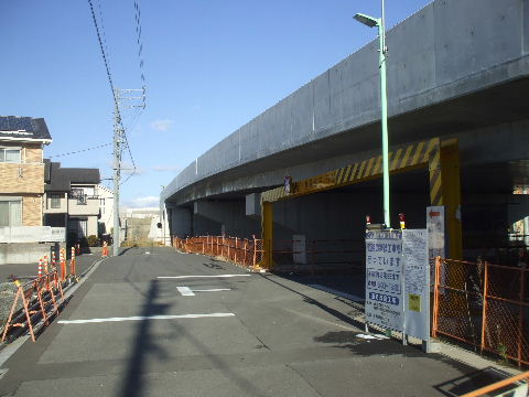 2021年02月21日。交差点から高架へ上がる所までの道路作り中。 |