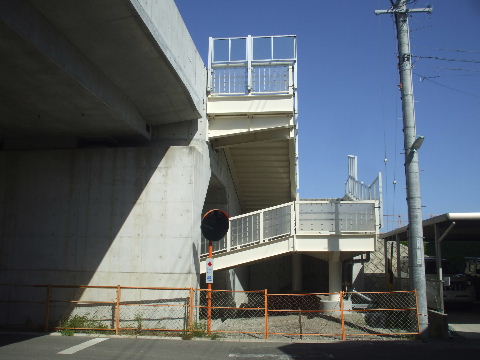 2018年10月21日。歩道へ上がる階段が出来ている。下流側にしかな いので橋の歩道は片側だけのようだ。 |