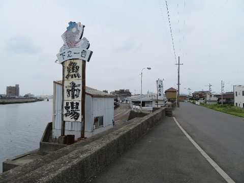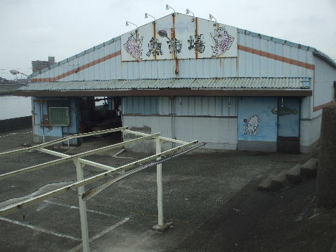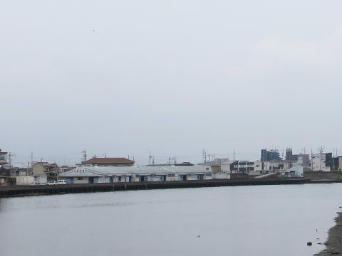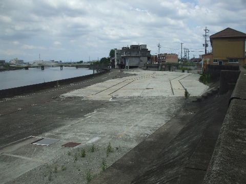 | 2019年06月29日。両郡橋の少し下流にある下之一色魚市場。 | 2021年07月25日。ここも堤防を嵩上げするので3月に閉鎖 され建物は撤去された。 |