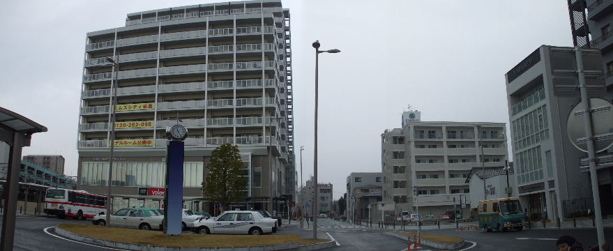 | 2009年12月23日。ビルにはスーパーも開店している。 | 2022年01月09日。12年ほど経ってこの景色はあまり変わりないが…。 |