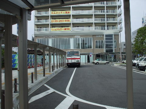 | 2009年8月29日。バス乗場。昔の乗場と同じような位置にあるが以前は道路だった前方に再開発ビルが立ちはだかっている。 | 2009年12月23日。地下通路にある駅改札口の向かい側にホームへのエレベーター専用改札口が出来た。改札内にはスペースが取れなかったのだろうか。 |