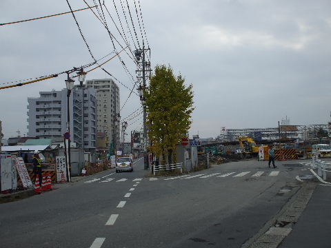 | 2008年11月3日。バス、タクシー乗場が出来上がり地下道入口も新しくなった。ビルの建設も進んで奥のマンションが見えなくなった。 |