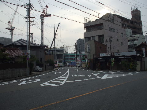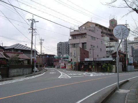 | 2007年1月20日。電車が走っていたころはここが踏切になっていたのだろう。 | 2007年7月28日。建物や商店街のアーチは無くなって交差点の木一本だけが残っている。 |