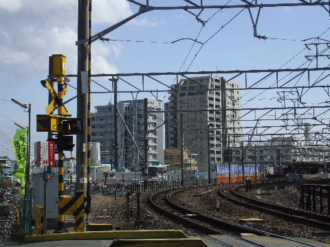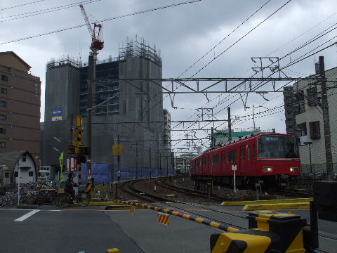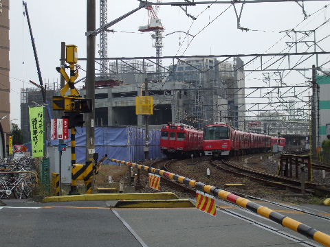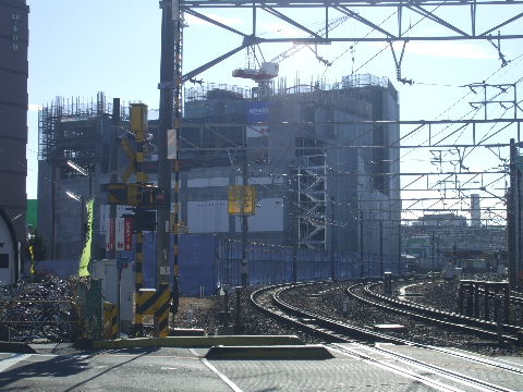 | 2008年2月23日。こちらからも工事が進んでいる様子が見える。 | 2008年11月3日。線路沿いに再開発ビルが立ち上がってきている。 |