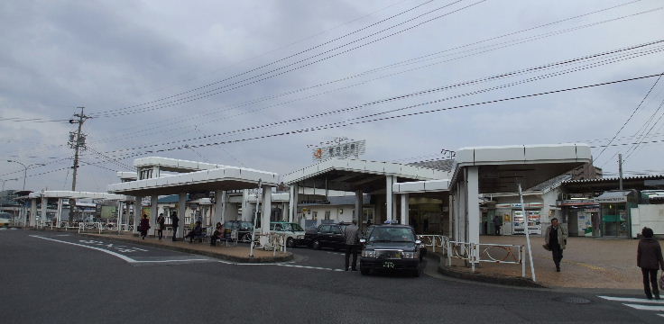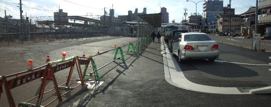 2017年12月13日。北口。真ん中をコンクリート舗装してバスとタクシーの待機場。 |