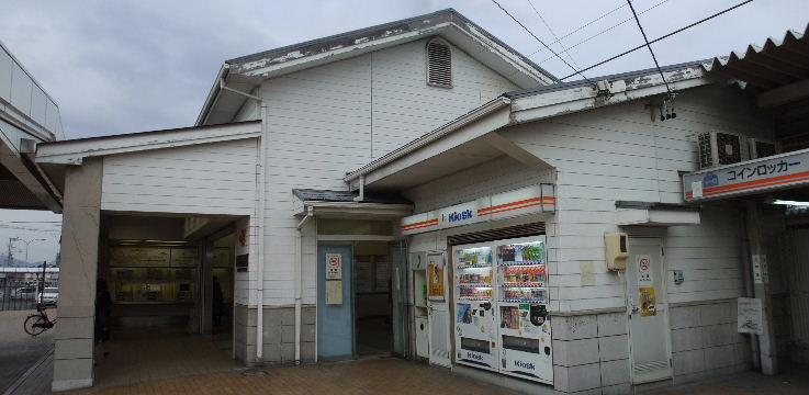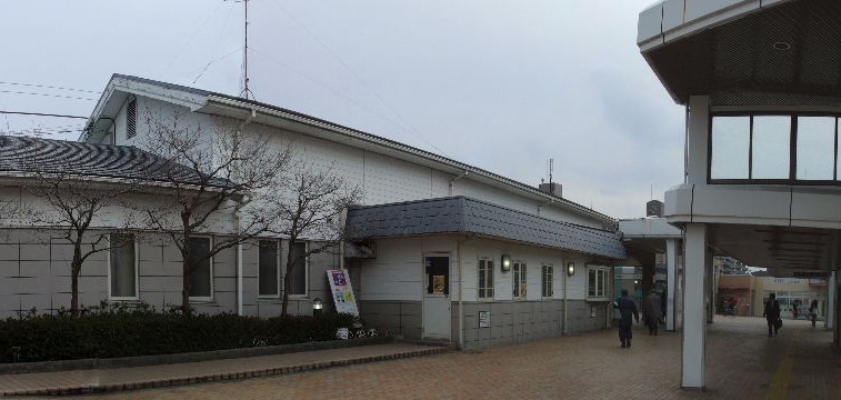 2012年4月7日。駅施設と事務所の建物の向こうに通路の | 2012年3月16日。こちらは乗降客も少ないが有人の窓口 |