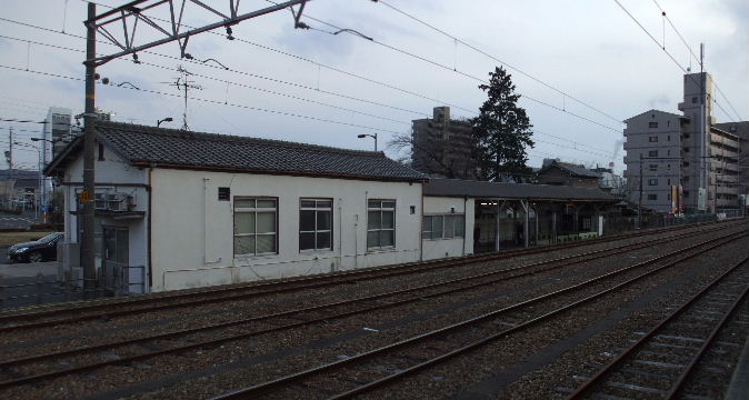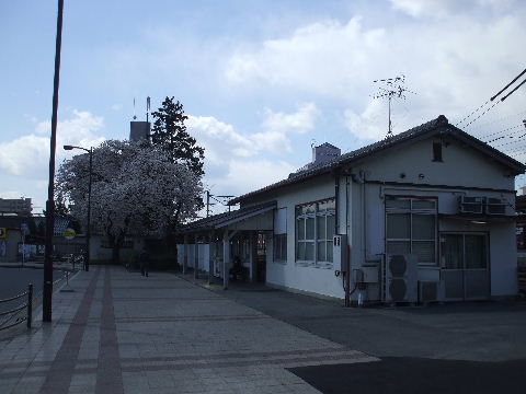 2012年03月16日。北口駅舎を西から見る。手前に出っ張っている所にはキヨスクがある。 |