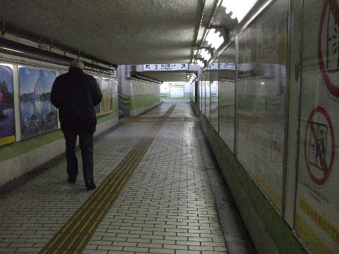 2012年3月16日。ちょっと天井低めの地下通路。電車の |