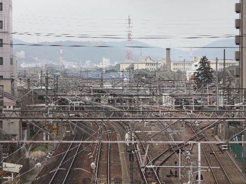 2017年05月15日。西の陸橋から見る。仮跨線橋が無くなっ |