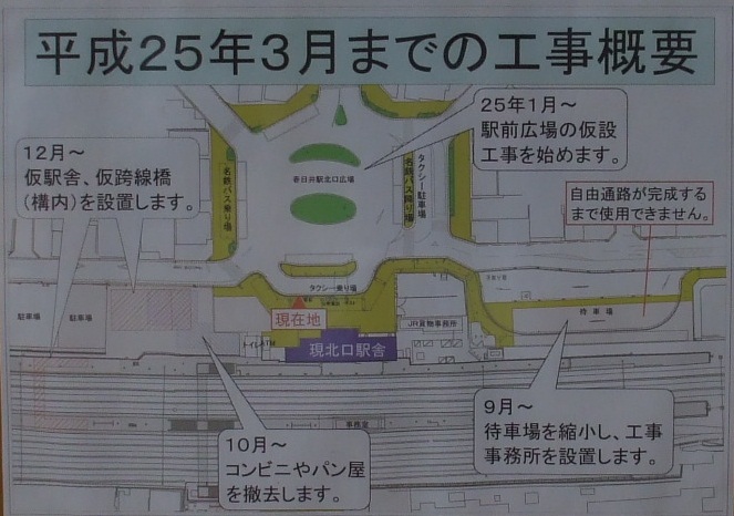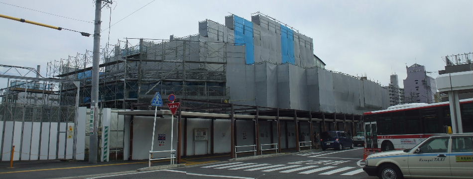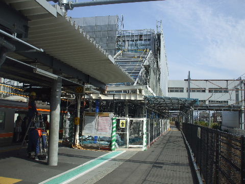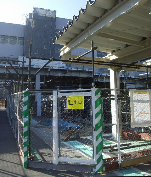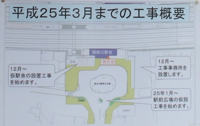 2012年12月9日。南口は桜と構内通路沿いの植栽が撤去された。便所の辺に仮の駅施設が作られそうなのでロー |