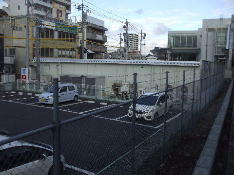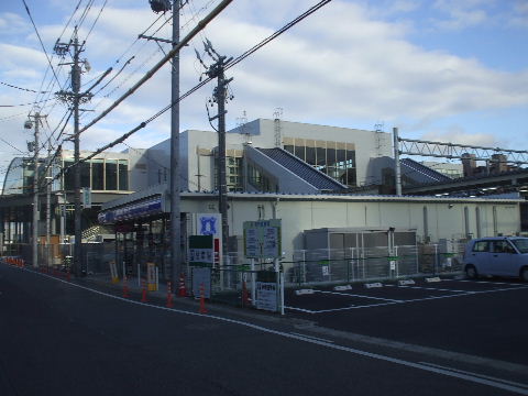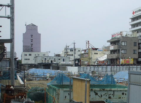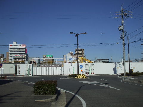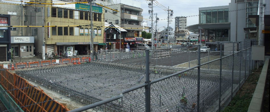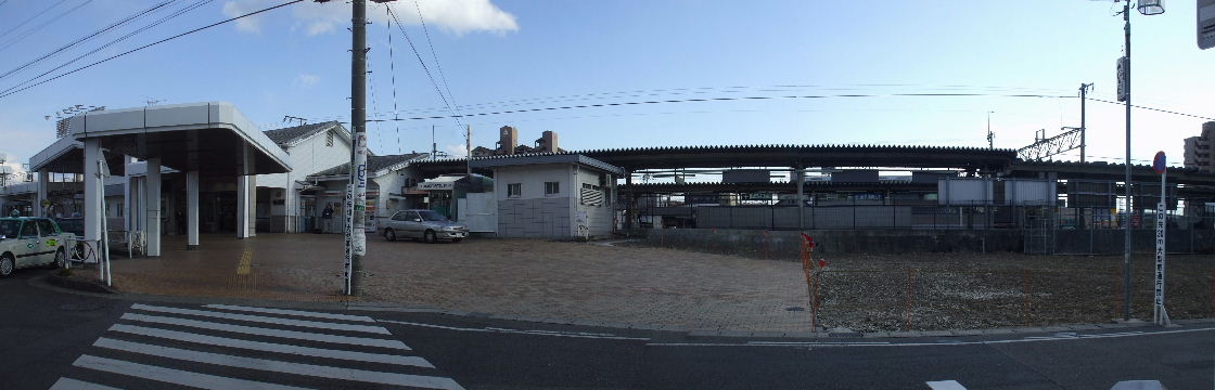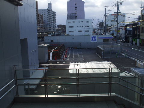 2012年12月9日。パン屋、コンビニ撤去され空地に。ここに仮の跨線橋や駅施設がつくられるようだ。 |