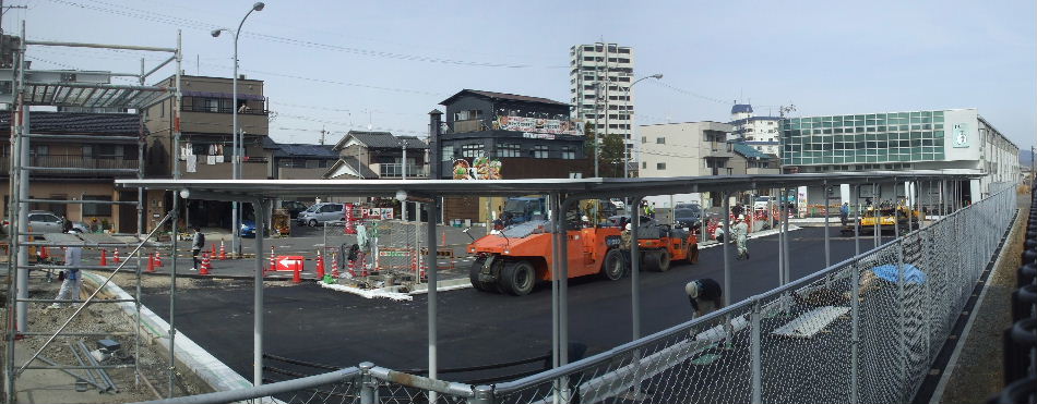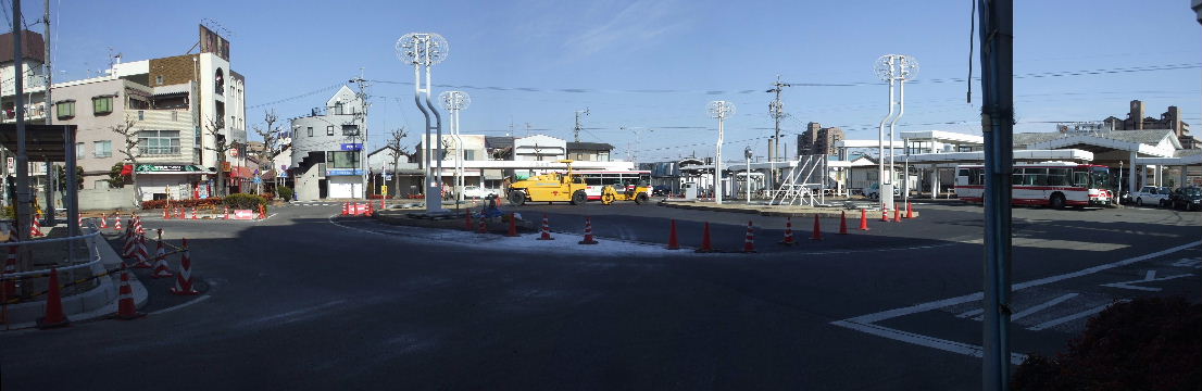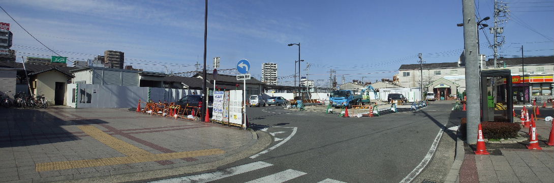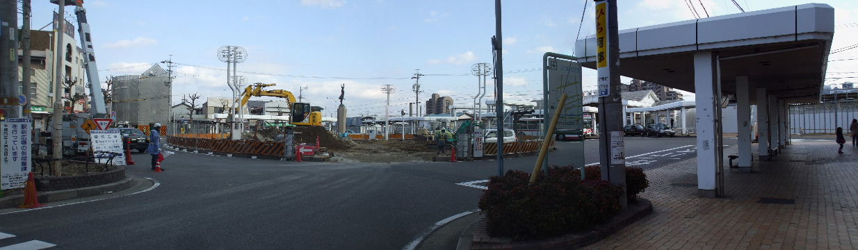 2017年03月05日。北口駅前広場の整備も始まるようで真ん中のバスやタクシーの待機場にあった島のようなのが全部撤去されている。 |