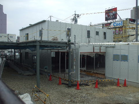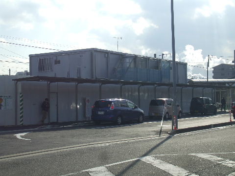 2013年7月13日。工事事務所によくあるのと同じ形の仮駅舎出来てきた。 |