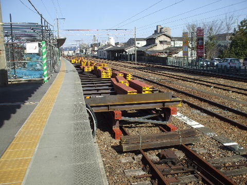 2013年3月3日。名古屋方面ホームの仮跨線橋工事の横 |