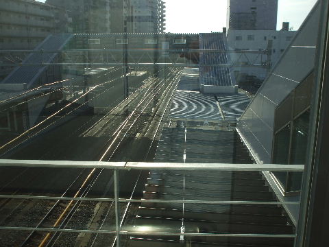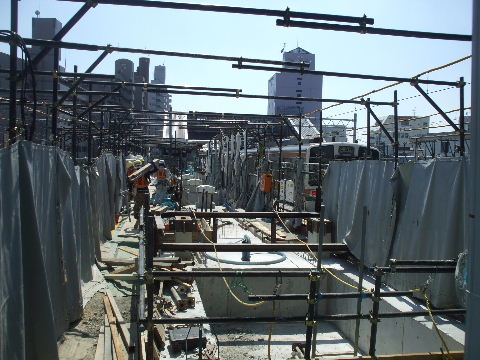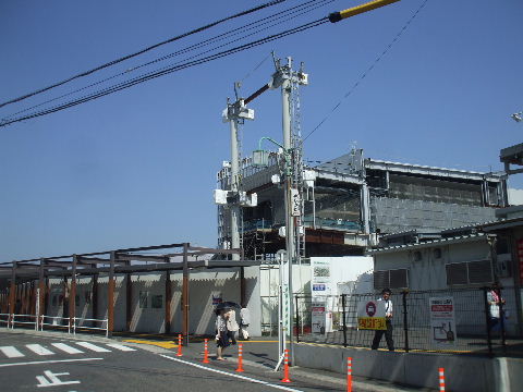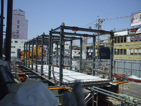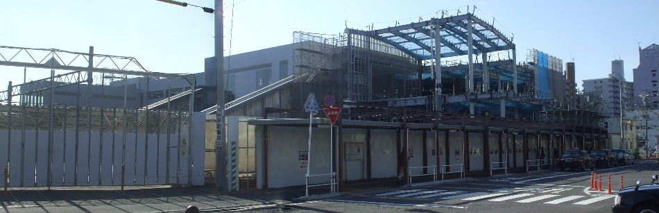 2012年3月16日。架線柱の上を駅舎と通路が通ることに |