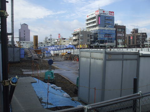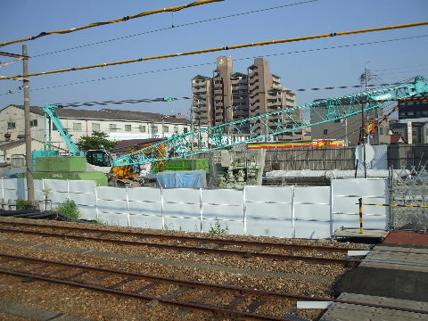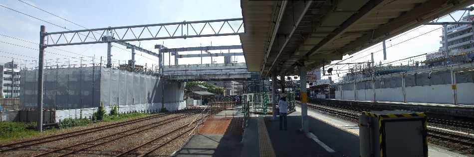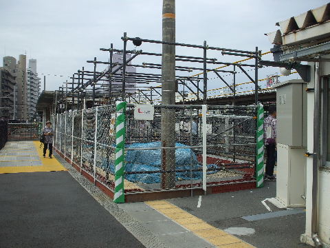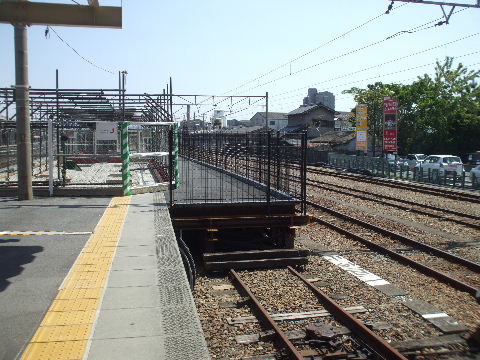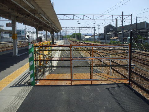 2013年5月5日。跨線橋の脇から線路潰してホーム拡張。 |