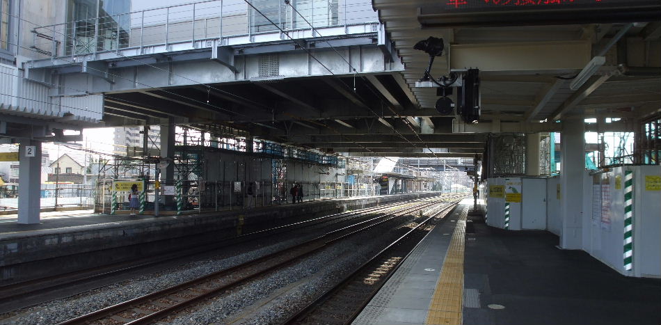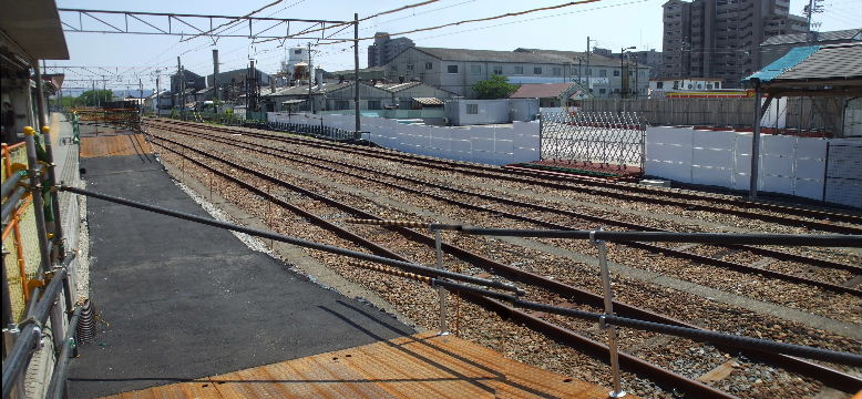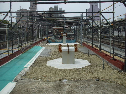2017年07月02日。工事中、ホームの幅を広げる為に副本 |