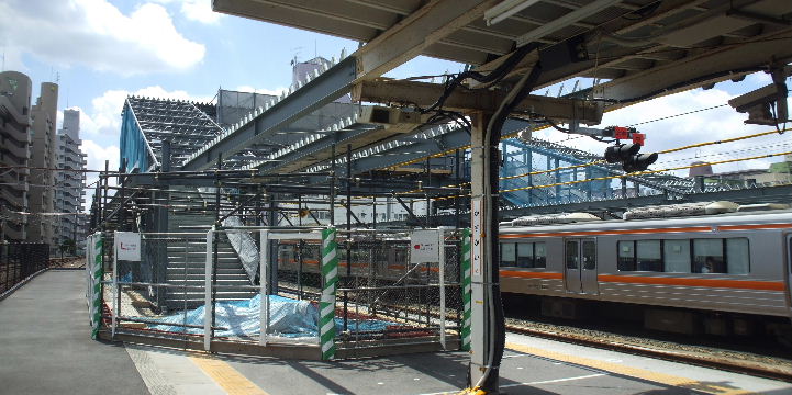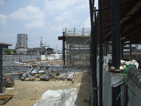 2014年7月21日。鉄骨が北口側に到達している。 |
