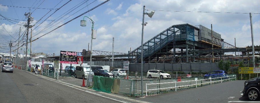 2013年8月11日。跨線橋出来てきた。あとはホームの橋上り口辺の整備と駅舎内の工事。 |