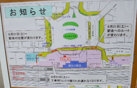 2013年10月5日。北口仮駅舎使用期間中の駅 |