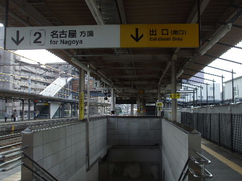 2013年10月5日。ホームへあがり名古屋方面は跨線橋へ。 |