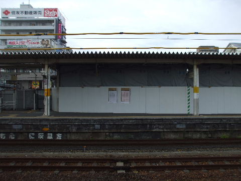2013年10月5日。以前改札口のあった所は塀で囲まれ、解体される。 |