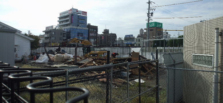 2017年09月23日。北口の東側は工事中の資材置き場や |
