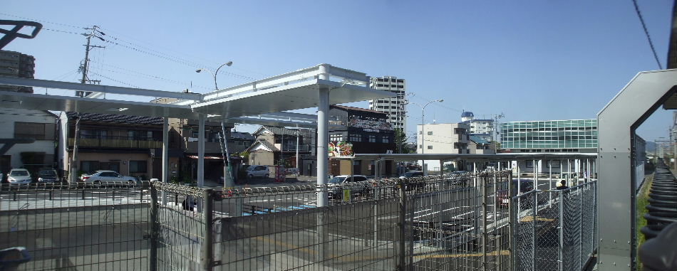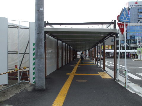 2018年05月14日。バス乗り場へ渡る所も屋根が出来ている。 |