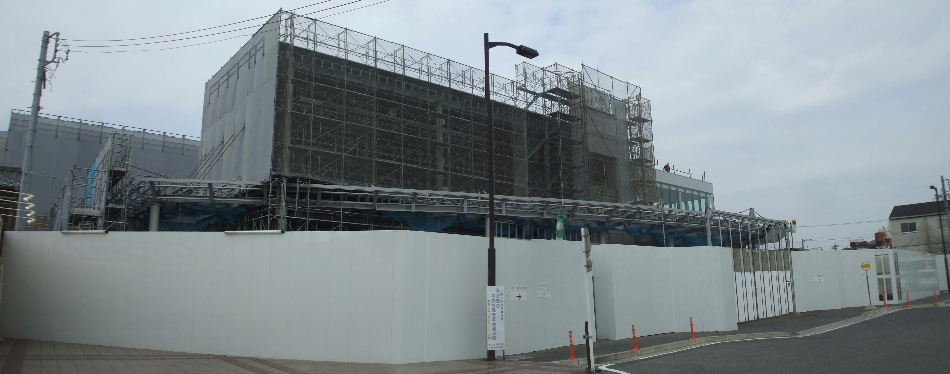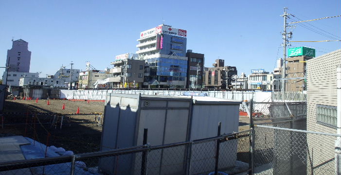 2018年03月03日。北口西の仮駅舎があった所にも建物を |
