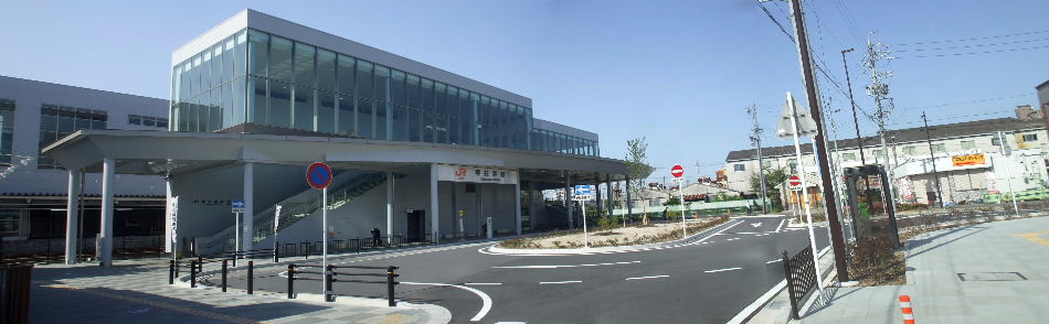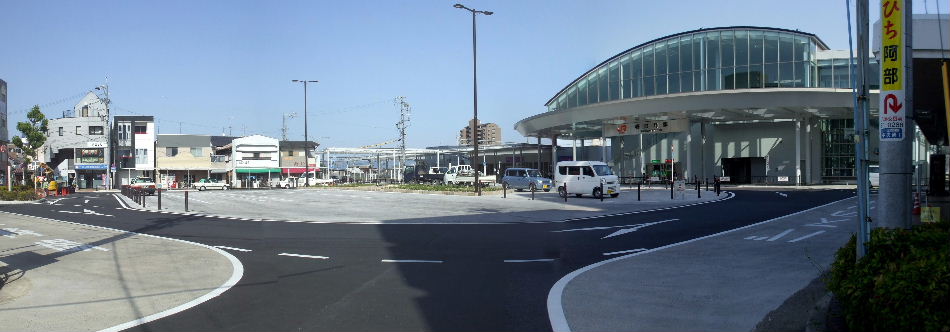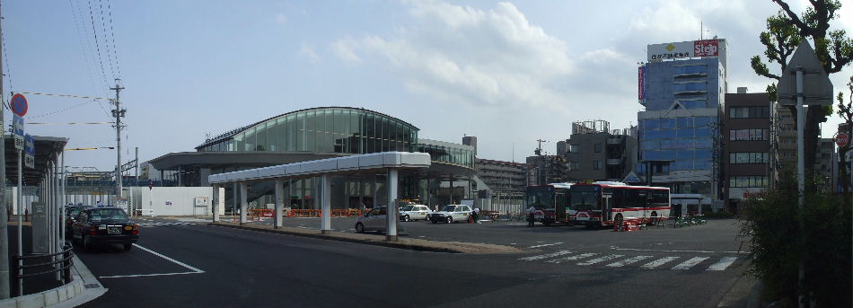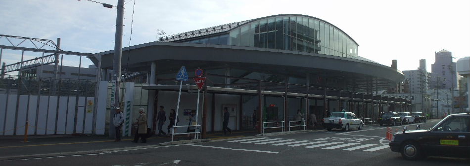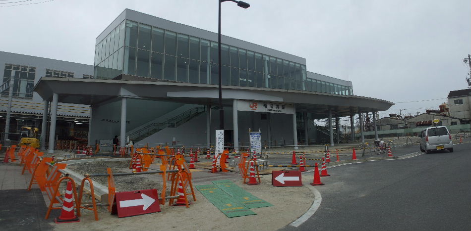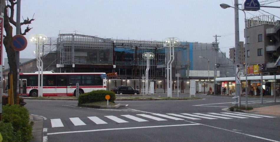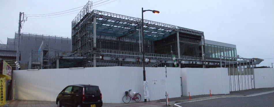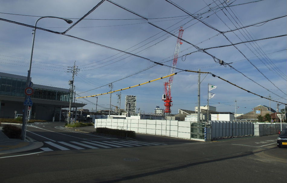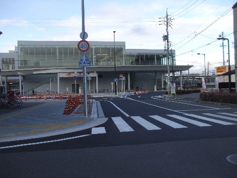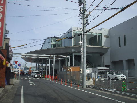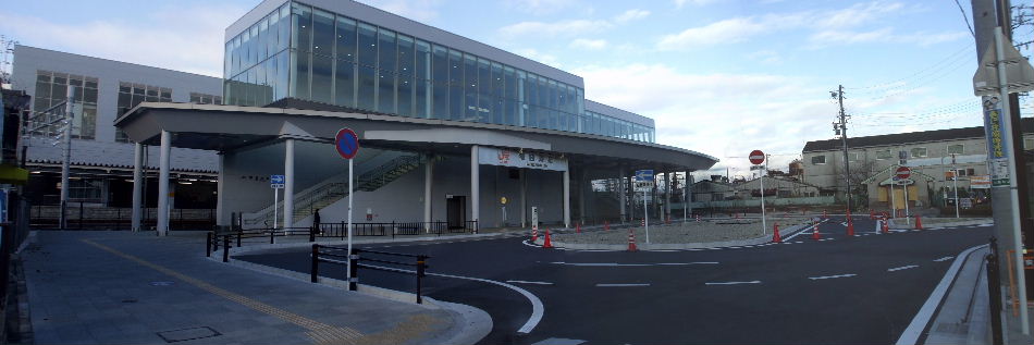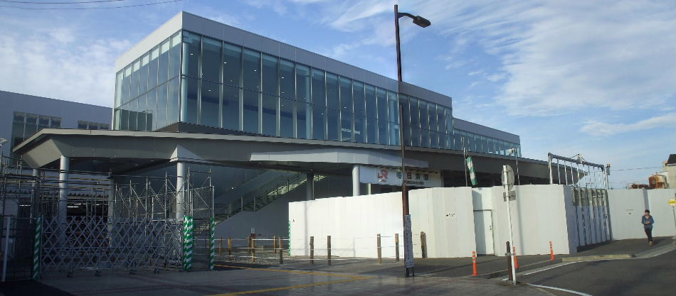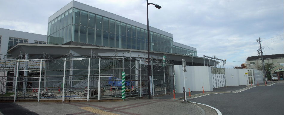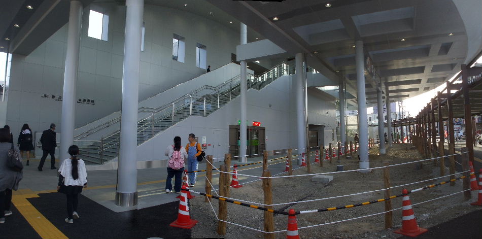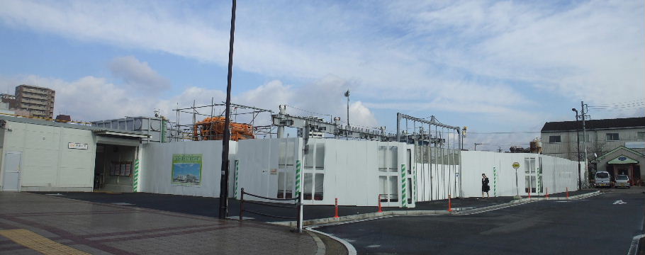 2016年10月30日。今日から新駅舎使用開始したが駅前整備が出来てないので塀が立ったまま。 |