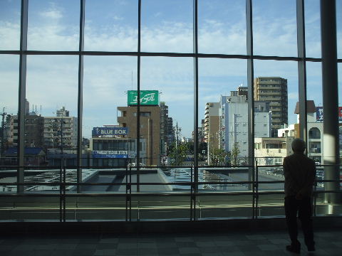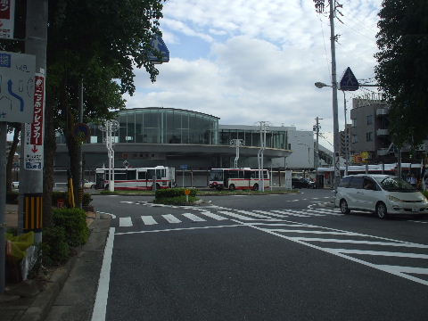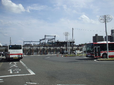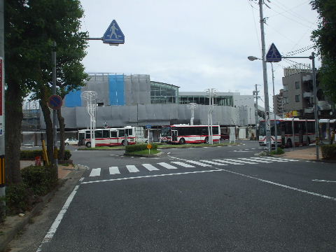 2013年10月5日。北口バス乗り場からは塀に囲まれた駅舎の屋根が見える。 |