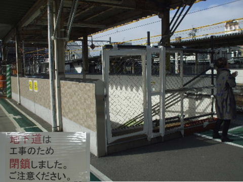 2016年12月18日。名古屋方面ホーム仮階段撤去跡。 |