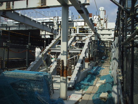 2013年8月11日。南口の作業場には大きいクレーンが搬入 |
