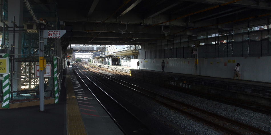 2017年09月23日。工事中、ホームの幅を確保するために |