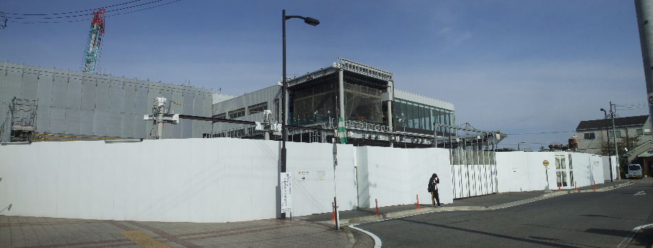 2013年11月23日。橋上駅舎南口予定地正面から見る。 |